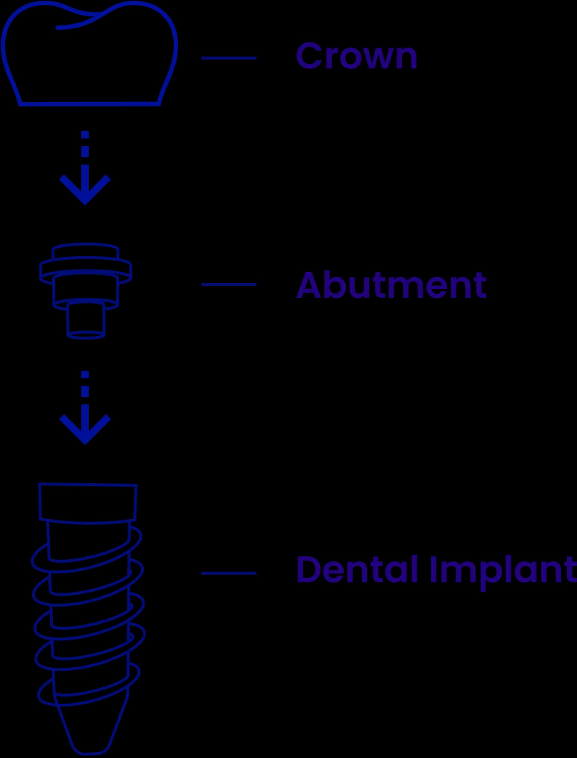 The tooth-coloured restoration - crafted from porcelain or zirconia - that sits atop the abutment and mimics natural enamel in form and function.