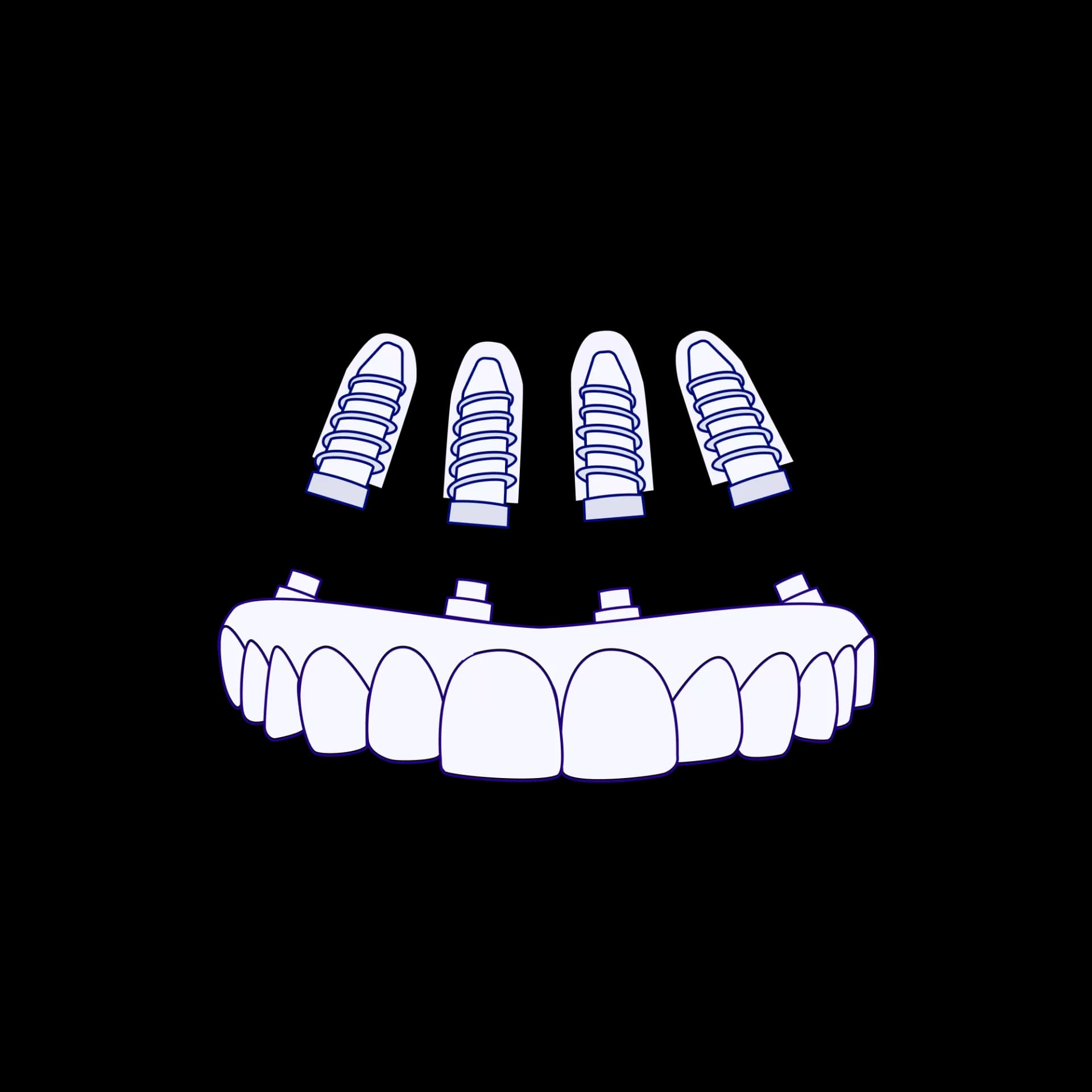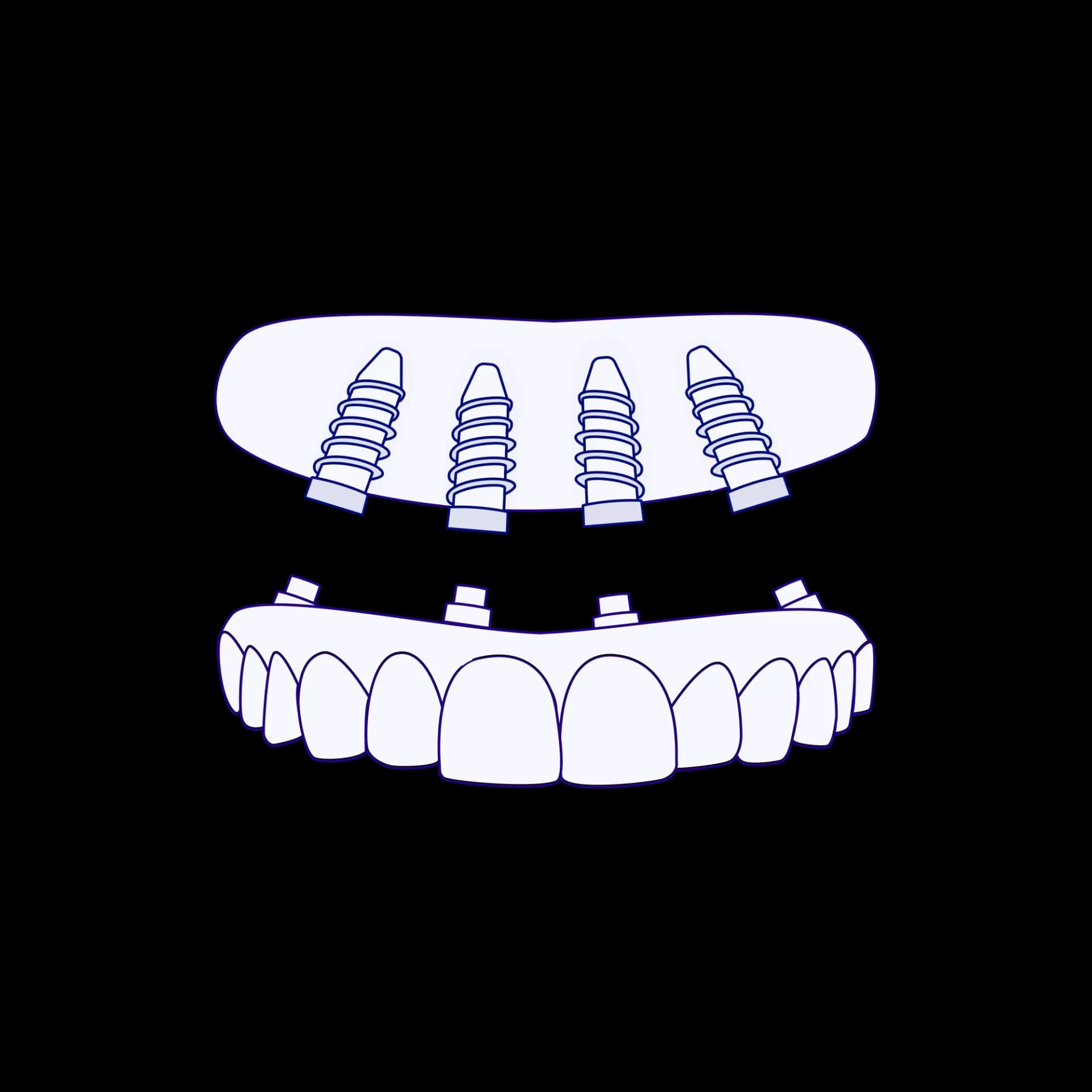 A fixed, full-arch prosthesis secured on four strategically placed implants. All-On-4 Plus® .
