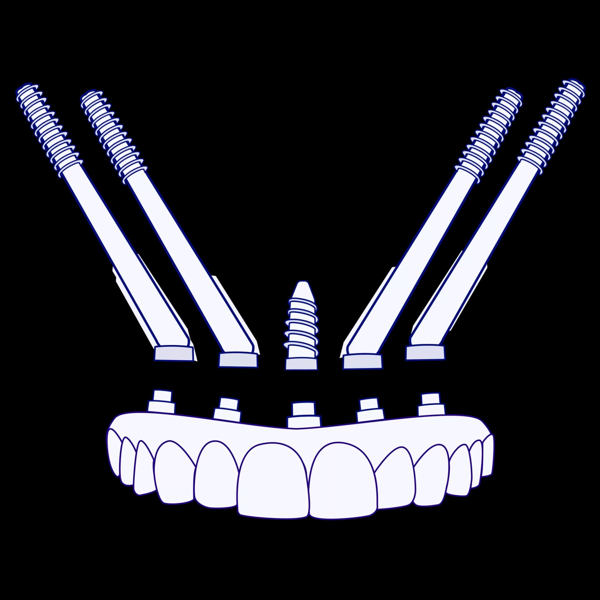 For cases requiring extra support—such as severe bone loss, bruxism, or a desire for longer cantilevers—this variation places 5 or 6 implants per arch.