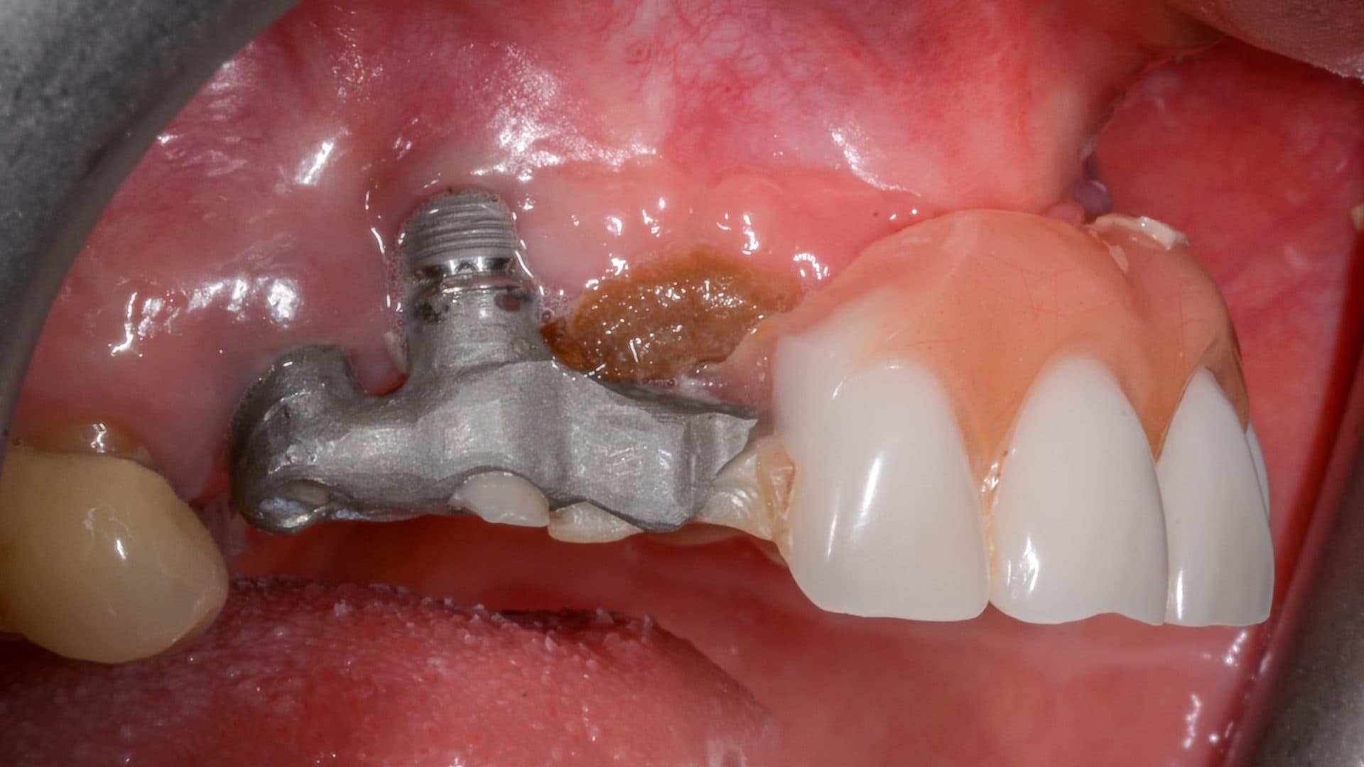 The implants in the picture below were also clean at one time, and probably looked great before the wear and tear, but click through on the picture to see the damage done when implants are placed incorrectly, causing the teeth to be bulky and impossible to clean.