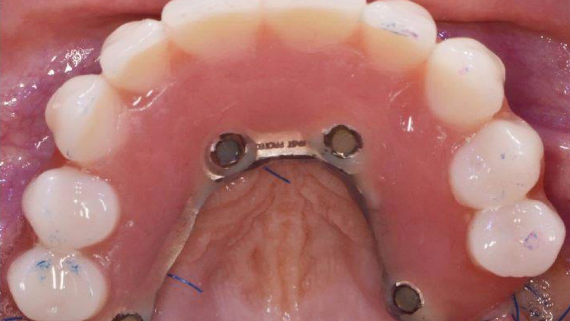 i. Even spread of the implants and flat and uniform under-surface/interface between the prosthesis and the natural gums. A deviation from this will affect the cleanability of the prosthesis, food entrapment and smell (See pictures);